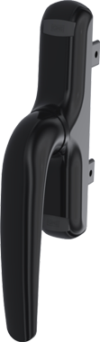 Punho de janela preto com design ergonómico e fixação metálica